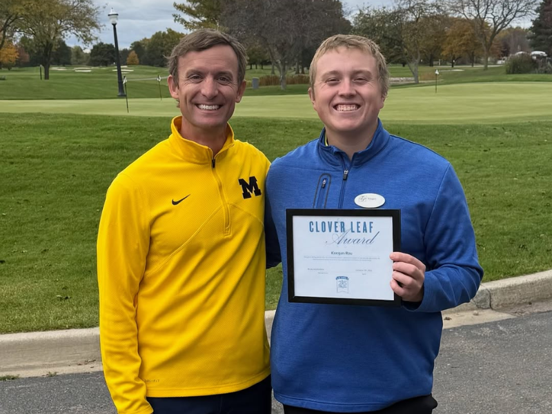 Congratulations to Nate Kuffner for receiving the Cloverleaf Award! In the month of September, Nate stepped in as manager on duty, supervised the golf course staff while tending to customer needs. He was a huge help and especially used service standard #9: We are empowered to take care of any customer situation that arises. We solve issues quickly and go above and beyond to create customer satisfaction.