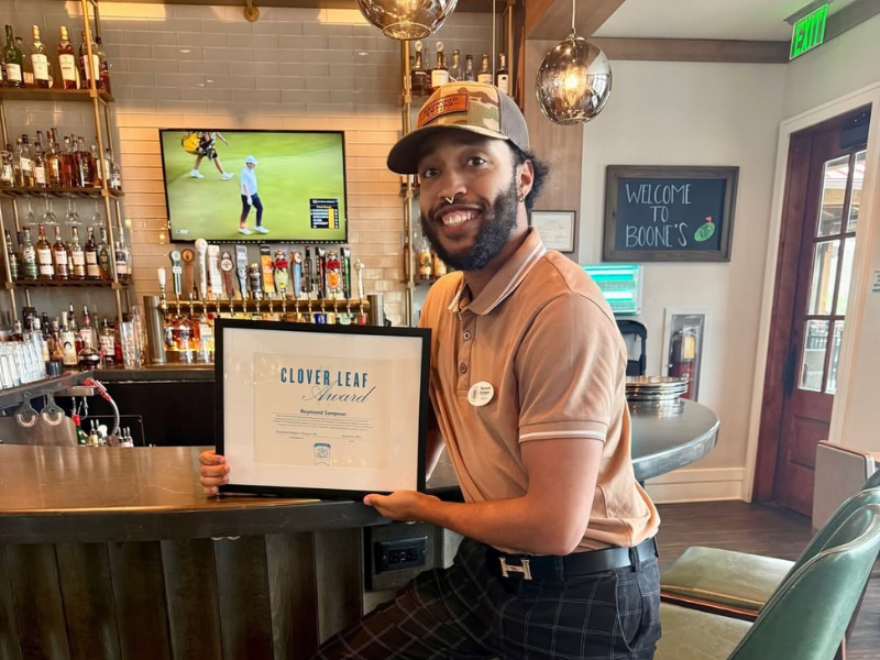 Congrats to our May Cloverleaf Winner, Aidan Dickerson! Aidan has really stepped up the outside service position and is quickly becoming a leader of the team. And the rest of the team is following his lead with regard to member and guest service standards. Aidan is always willing to learn every day and helps share best practices with the rest of the team. Well deserved!